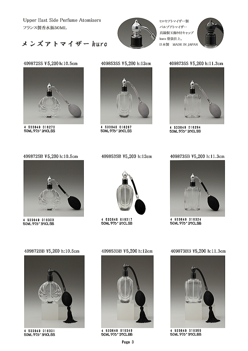 ☆☆☆レトロ風ドイツ製クリスタボトルや優美なフランス製クリスタルボトルのバルブアトマイザーは、映画の一シーンを思わせる優雅な時を奏でてくれる小物たちです。香りの演出を一段と引き立てるお洒落なデザインを香りにに合わせてお選び頂けます。 バルブスプレー金具はヒロセアトマイザー製です。